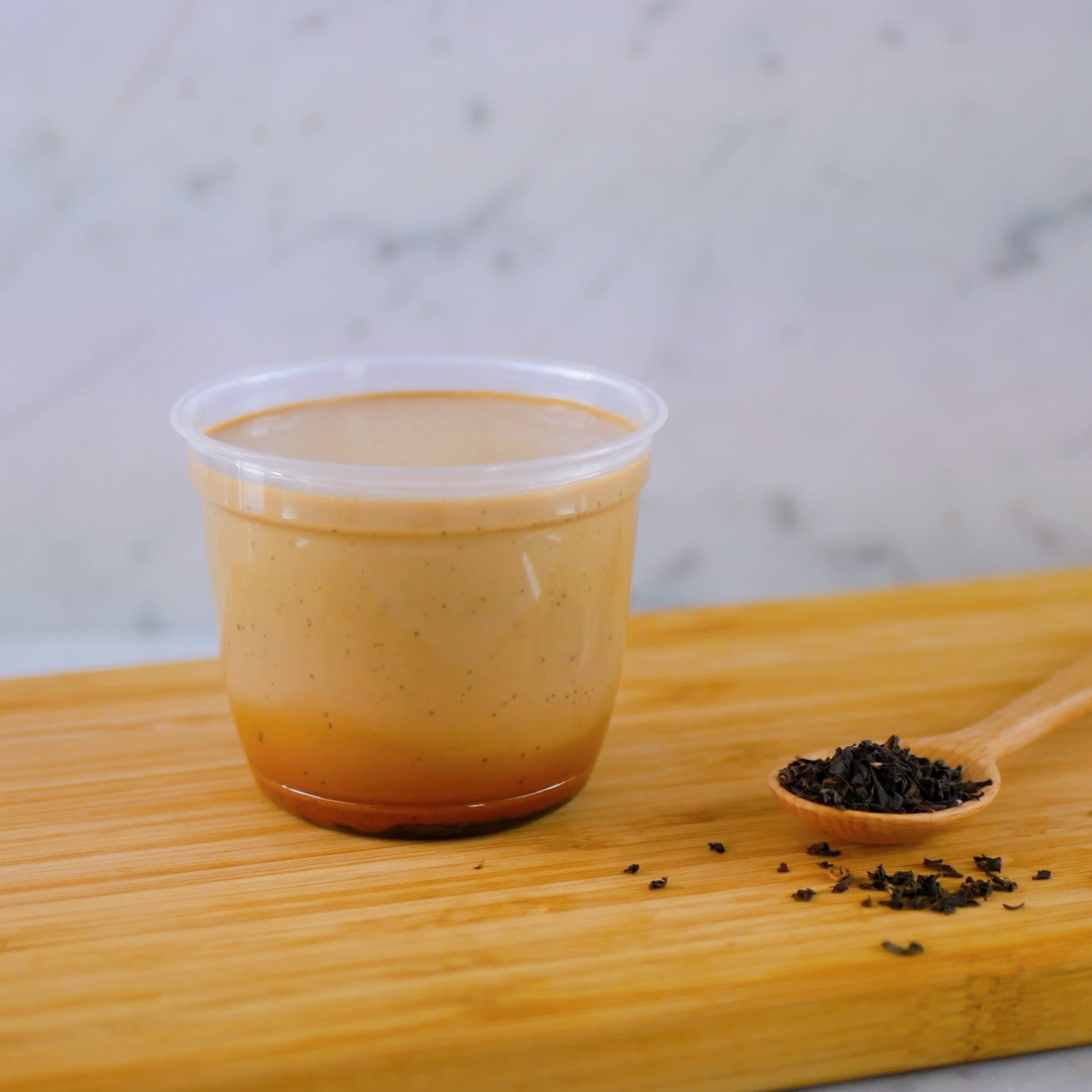 オリジナルでブレンドした上質な茶葉を贅沢に抽出し、深みのあるロイヤルミルクティーの香りをそのままプリンに閉じ込めました。ひと口目はふわりと華やぐ紅茶の芳香、次いでミルクのまろやかさが広がり、最後はほんのり渋みを残した茶葉の余韻がゆっくりと続きます。
